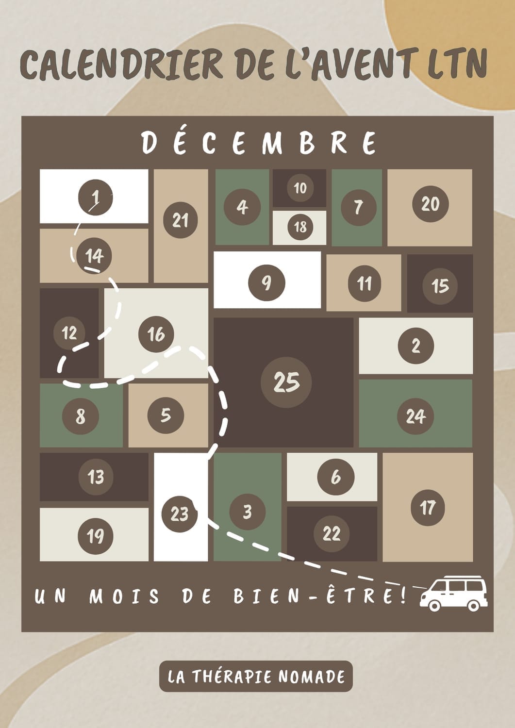 Prenez le temps de télécharger ce calendrier et d'ouvrir chaque case tout au long de décembre. Ces outils sont puissants et vous aideront à améliorer ou stabiliser votre santé mentale.