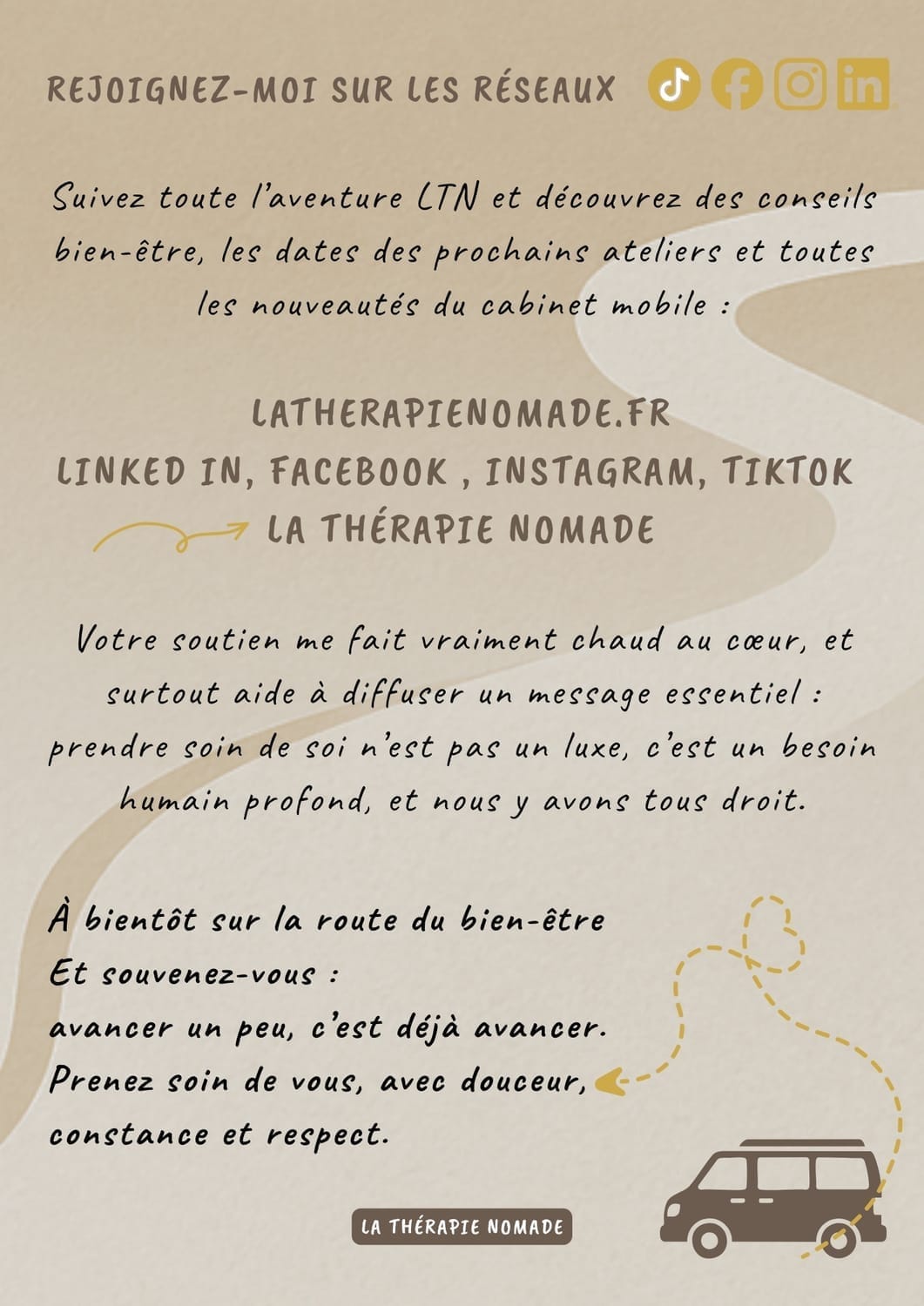 Avec LTN, j’ai choisi de rendre la thérapie plus accessible, plus humaine, plus simple pour chacun d’entre vous : un cabinet mobile qui se déplace là où vous êtes, là où le besoin existe; à domicile, en nature, en structure, en entreprise, en écoles et en visio.