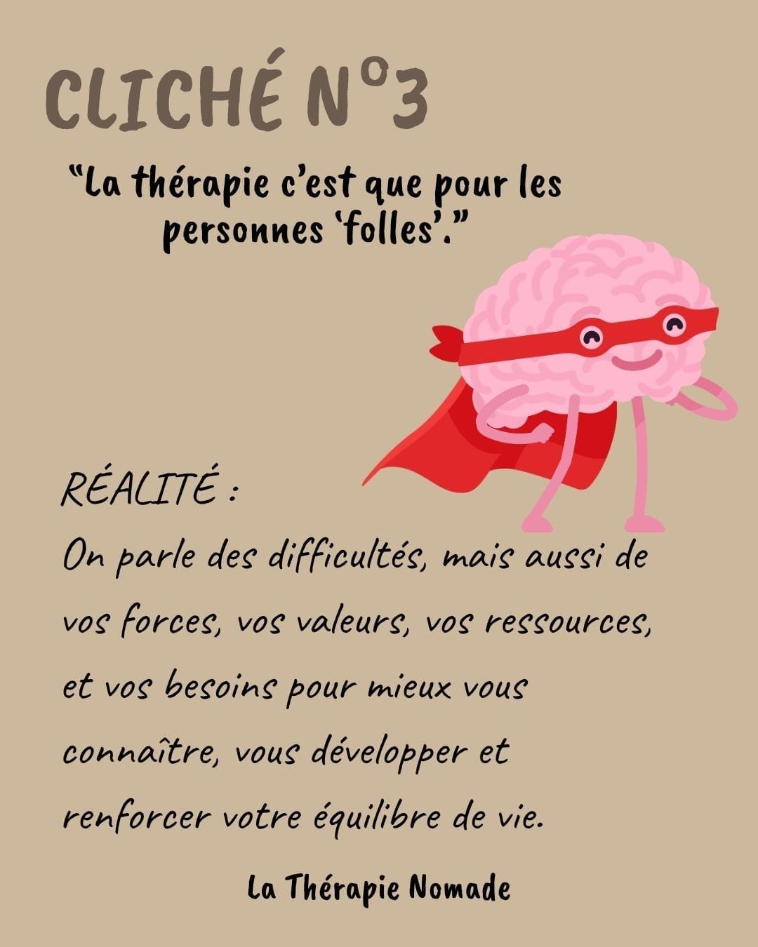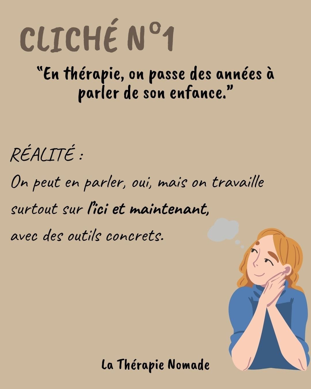 De nombreux clichés persistent autour de la thérapie : idée qu’elle serait réservée aux personnes en difficulté, qu’il faudrait « aller mal » pour consulter, ou qu’elle se résume à parler sans agir.